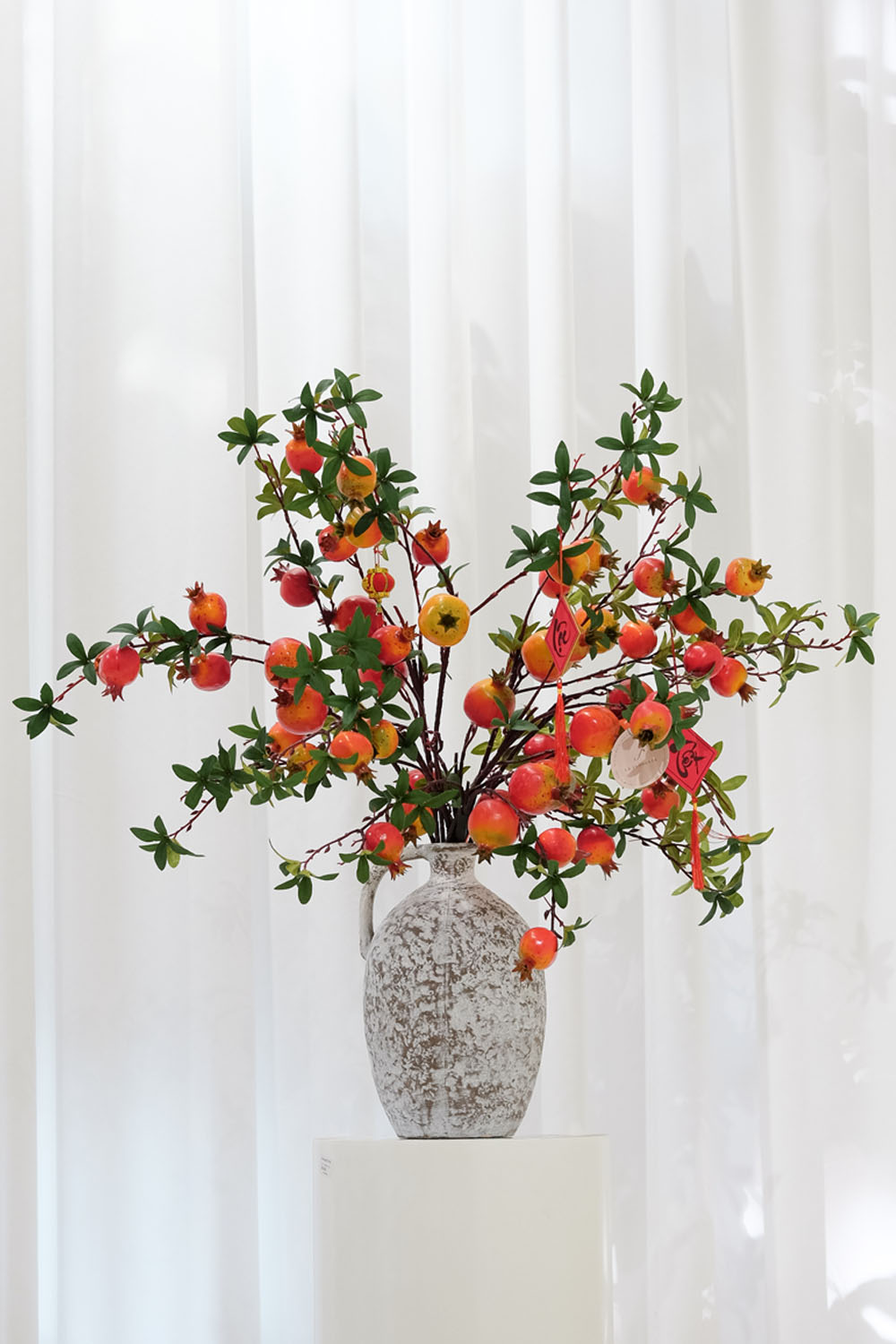 Bình quả lựu phú quý mang vẻ đẹp căng tràn và rực rỡ, tượng trưng cho tài lộc và sự sung túc. Thiết kế tinh tế giúp không gian thêm ấm áp, đồng thời gửi gắm lời chúc may mắn và thịnh vượng. Mỗi chi tiết quả lựu được tạo hình sinh động, mang đến cảm giác tươi mới và đầy sức sống. Đây là sản phẩm decor ý nghĩa, thích hợp để trưng bày hoặc làm quà tặng trong những dịp đặc biệt.