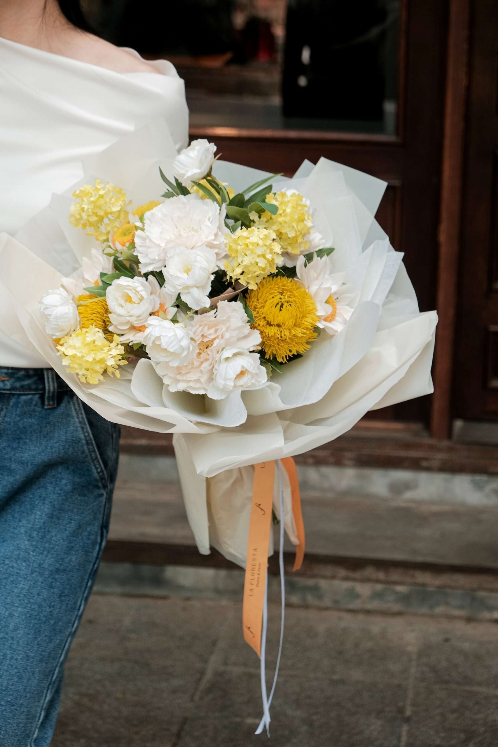 Bó hoa lụa cao cấp mix mẫu đơn Greenwick và tú cầu nhỏ tone vàng trắng toát lên vẻ sang trọng, dịu dàng và thanh lịch. Màu sắc nhẹ nhàng cùng đường nét tinh tế của hoa tạo nên món quà hoàn hảo để gửi gắm yêu thương. Mỗi bông hoa được chăm chút tỉ mỉ, mang đến cảm giác tinh tế và trọn vẹn tình cảm. Đây là lựa chọn tuyệt vời để trao gửi sự quan tâm và ngọt ngào đến người đặc biệt.