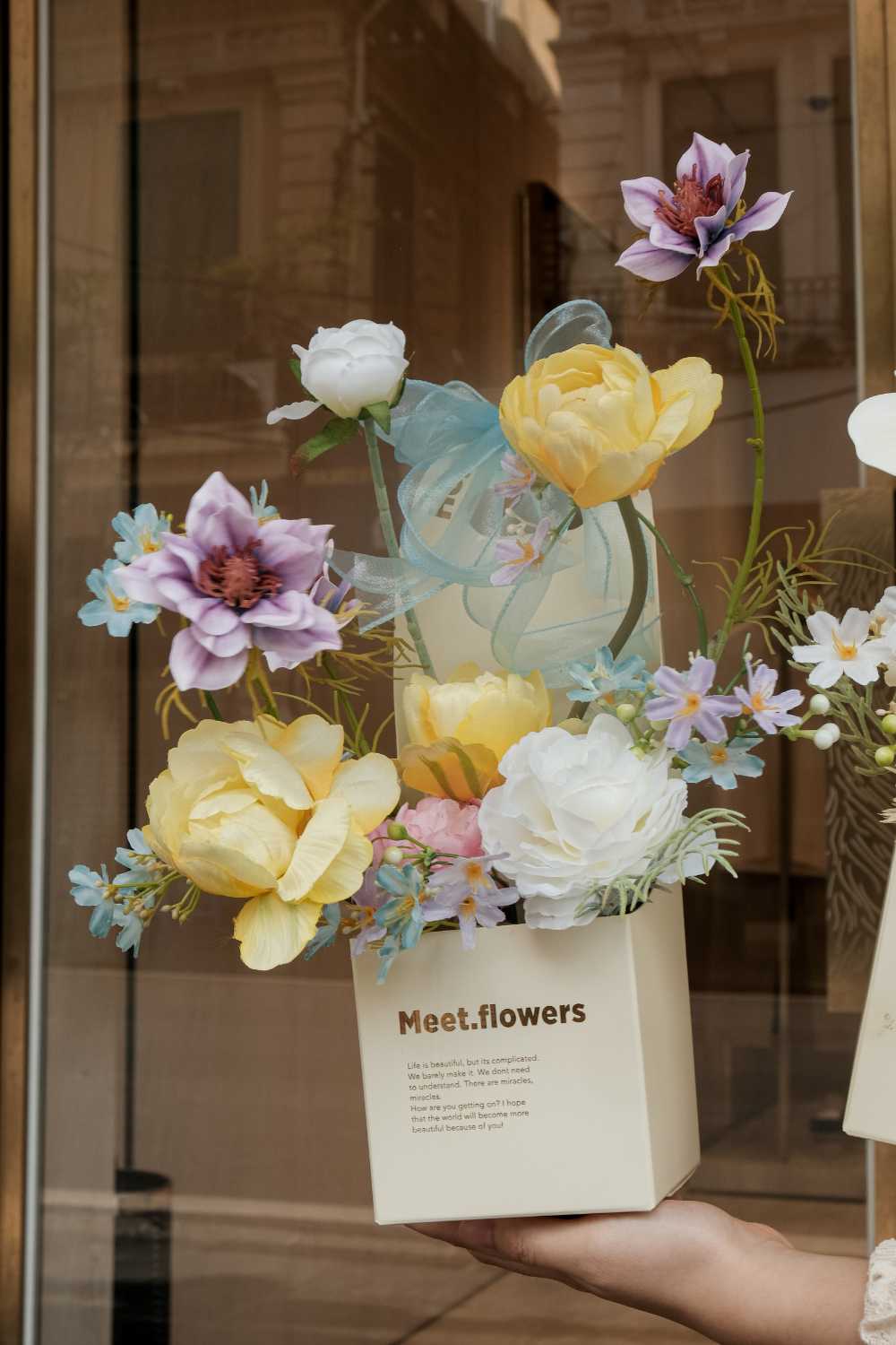 Túi hoa mix hoa hồng tone vàng tím
